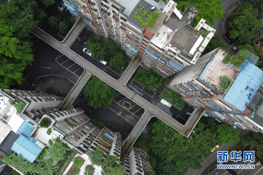 繼輕軌穿樓、高鐵穿樓、“貓頭鷹”立交橋之后,重慶又一建筑走紅網(wǎng)絡(luò)。近日,有網(wǎng)友發(fā)現(xiàn),重慶渝中區(qū)一個(gè)老小區(qū)幾棟居民樓的4樓中間,建起了連接各個(gè)單元的空中走廊,居民出入猶如空中漫步。新華網(wǎng) 耿駿宇 攝