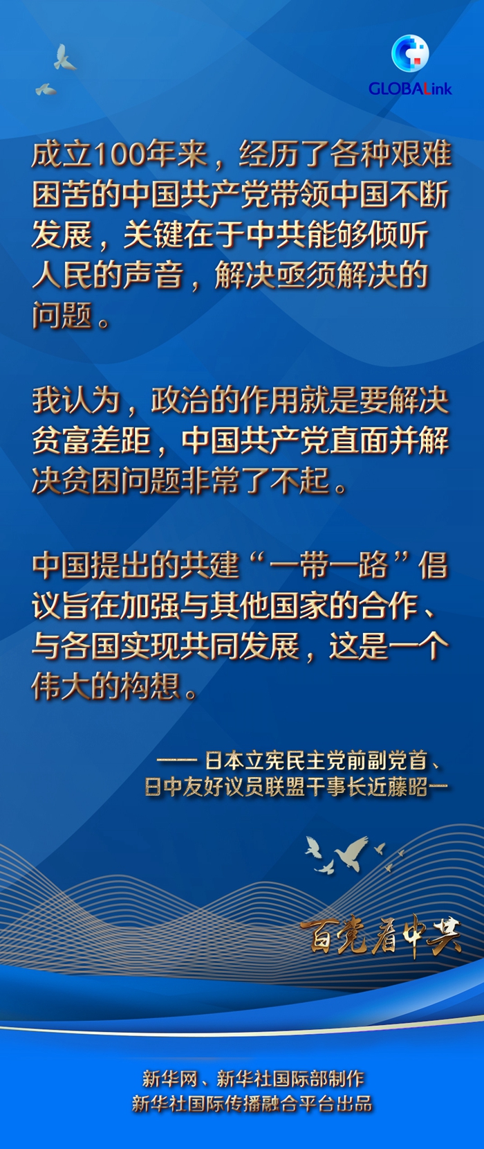 全球連線 | 解決難題·傾聽(tīng)民意·帶領(lǐng)中國(guó)發(fā)展——日本立憲民主黨前副黨首、日中友好議員聯(lián)盟干事長(zhǎng)近藤昭一眼中的百年中共