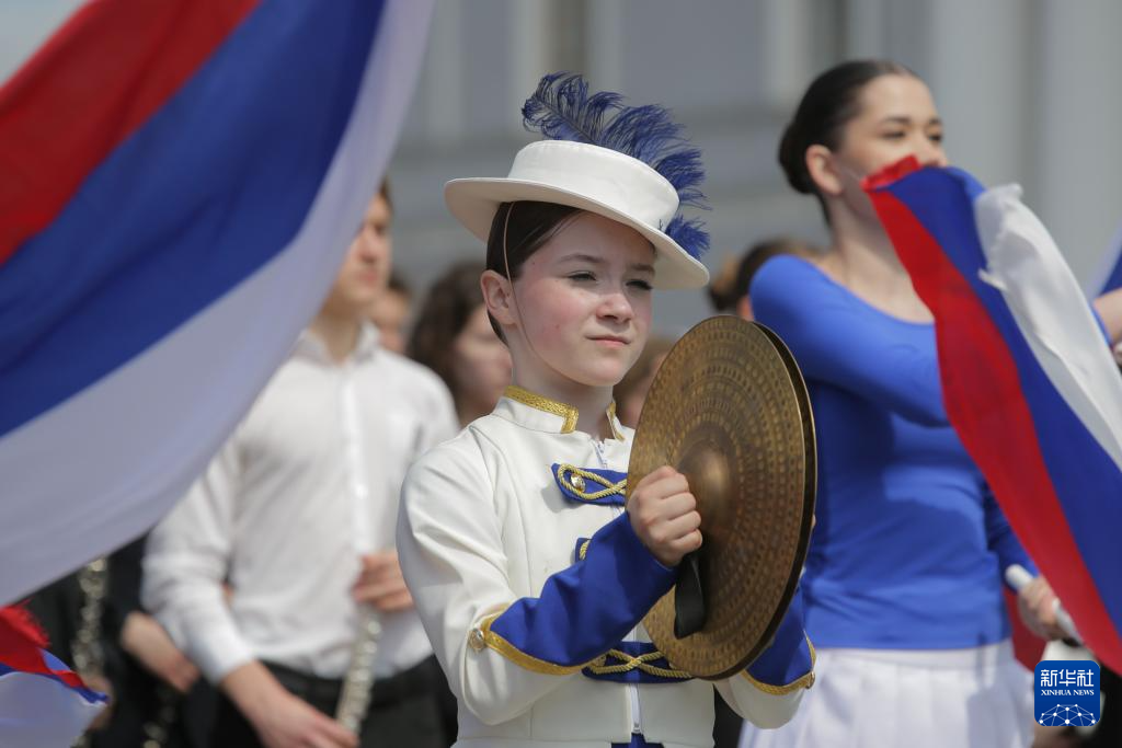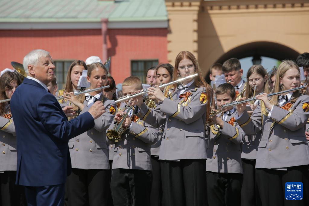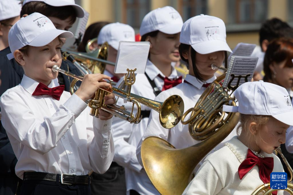 5月27日,儿童和青少年乐手等参加在俄罗斯圣彼得堡彼得保罗要塞举行的管乐队演出。