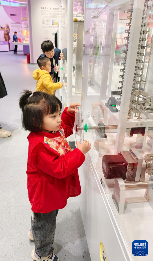 1月2日,小朋友在广西贺州市科技馆体验科普设备。