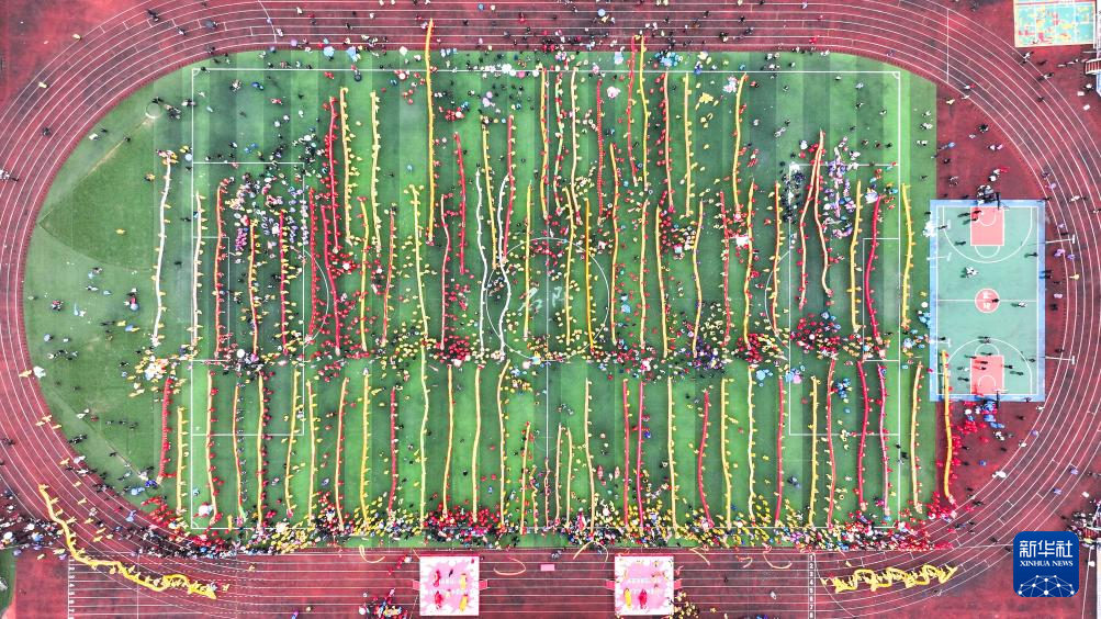 这是2月27日拍摄的贵州省石阡县仡佬毛龙节开幕式现场(无人机照片)。