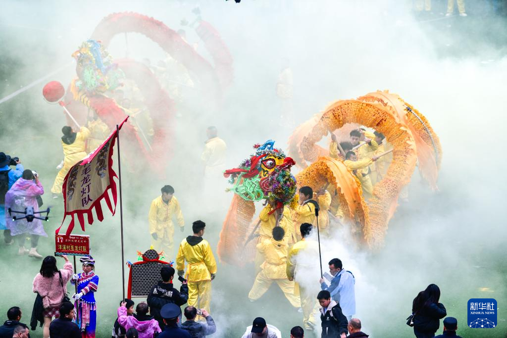 2月27日,人们在贵州省石阡县参加仡佬毛龙节舞龙展演活动。