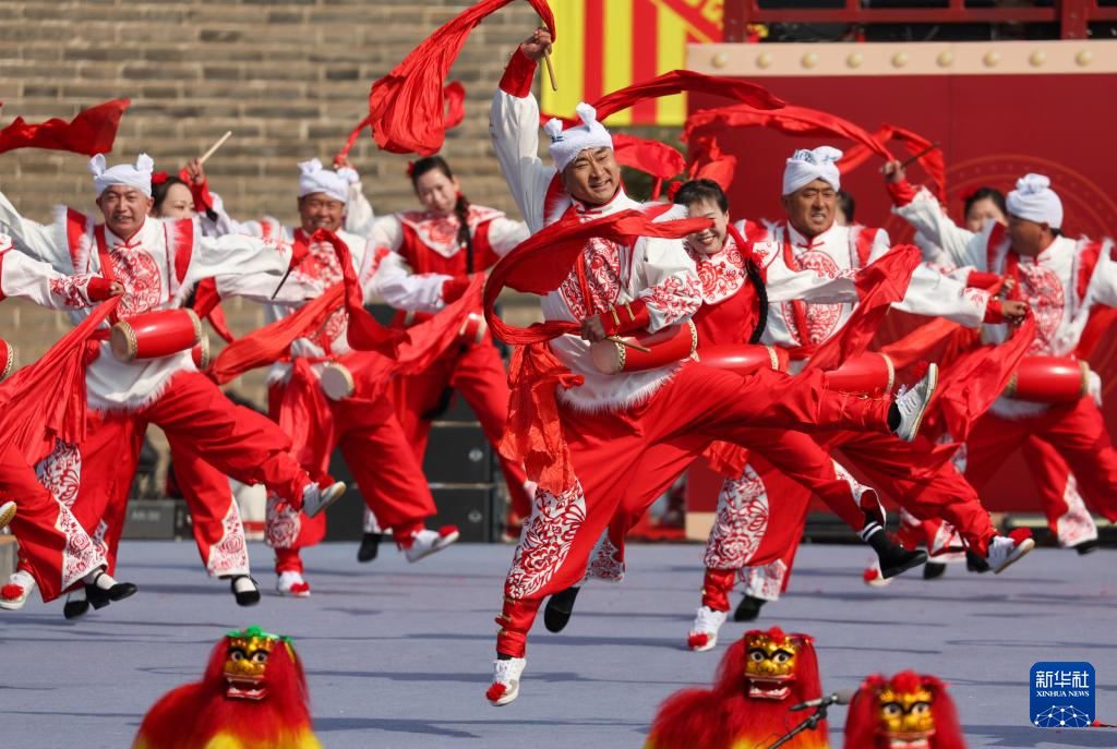 3月15日,演员在河北省石家庄市正定古城进行“安塞腰鼓”表演。