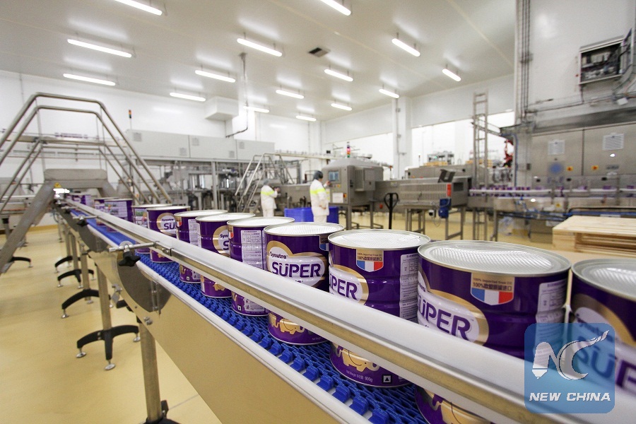 Photo provided to Xinhua by Synutra shows the assembly line of the Synutra factory in Carhaix, France.