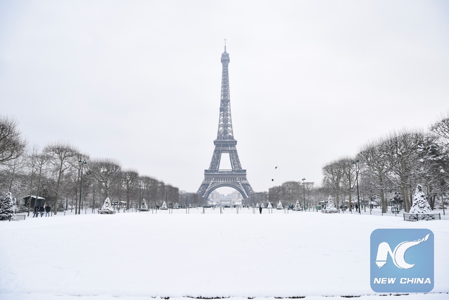 Photo taken on Feb. 7, 2018 shows the Eiffel Tower in Paris, France. (Xinhua/Chen Yichen)