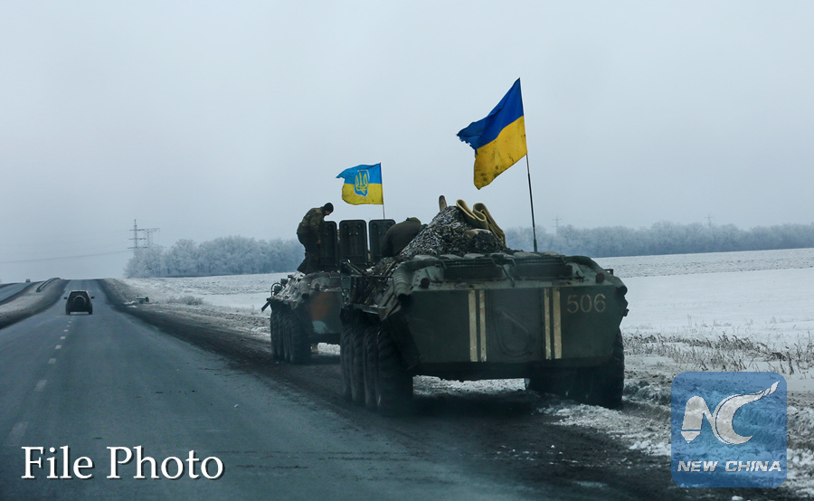 Photo taken on Dec. 24, 2016 shows Ukrainian army's armored vehicles withdrawn from the frontline on the way to the Donetsk city in the Donbas region, Ukraine. (Xinhua/Chen Junfeng)