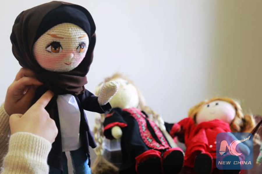 In the southern Gaza Strip town of Rafah, 24-year-old Rewaa Hijazi runs the single dolls making business in the Palestinian enclave, bringing joy to children who dream of owning a doll to their liking. (Xinhua/Saud Abu Ramadan)