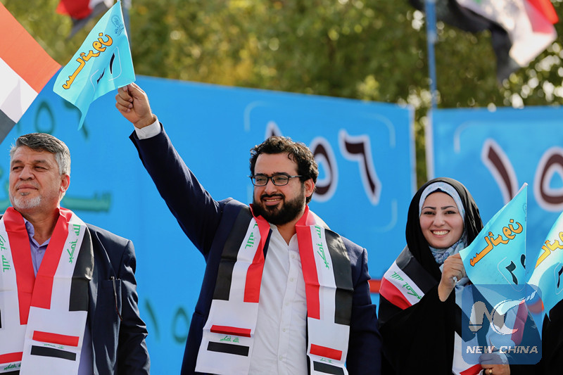 On May 4, Muntadhar al-Zaidi(middle) participates in an rally in Tahrir Square, Baghdad. (Xinhua/Khalil Dawood)
