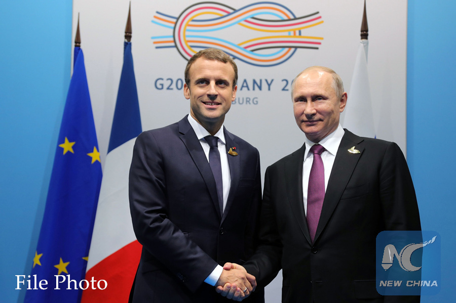 MOSCOW, May 15 (Xinhua) -- Russian President Vladimir Putin and his French counterpart Emmanuel Macron agreed Tuesday that the two countries will continue to honor the Iran nuclear deal despite the U.S. exit.