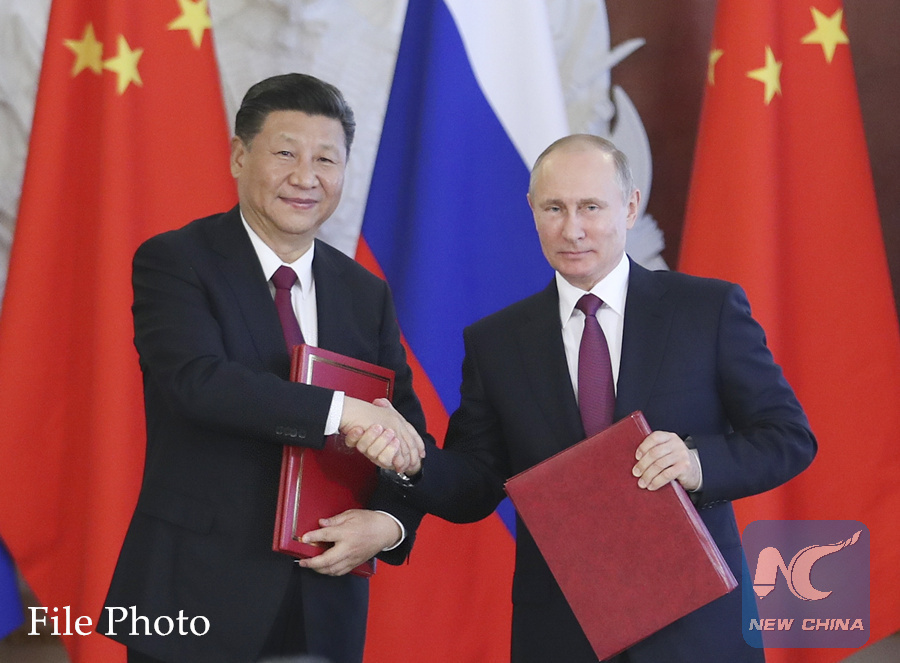 Chinese President Xi Jinping and his Russian counterpart Vladimir Putin attend a signing ceremony after their talks in Moscow, Russia, July 4, 2017. (Xinhua/Xie Huanchi)