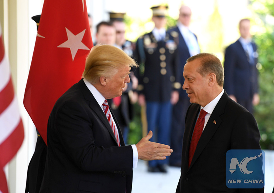 In this file photo, U.S. President Donald Trump (L) welcomes Turkish counterpart Recep Tayyip Erdogan at the White House on May 16, 2017. The ties between the two NATO allies have been strained by political, military and trade disputes. (Xinhua)