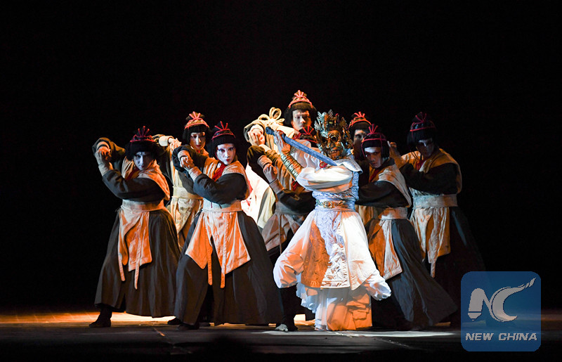 Artists perform during the theater drama "Synopsis of the Prince of Lanling" at Ballon Theater in Cairo, Egypt, on Sept. 14, 2018. (Xinhua/Wu Huiwo)