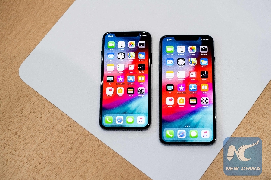File Photo: An Apple iPhone Xs Max (R) and iPhone Xs rest on a table during a launch event on Sept. 12, 2018, in Cupertino, California. (Xinhua/AFP)