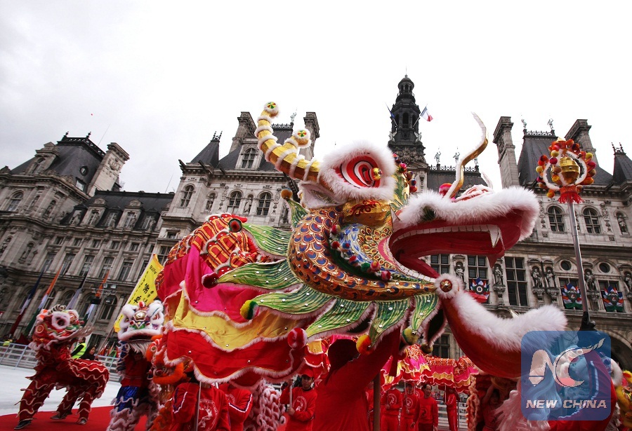 This file photo taken on Jan. 28, 2012 showed that people were performing traditional Chinese dragon dance and lion dance during a Spring Festival parade in Paris, capital of France.