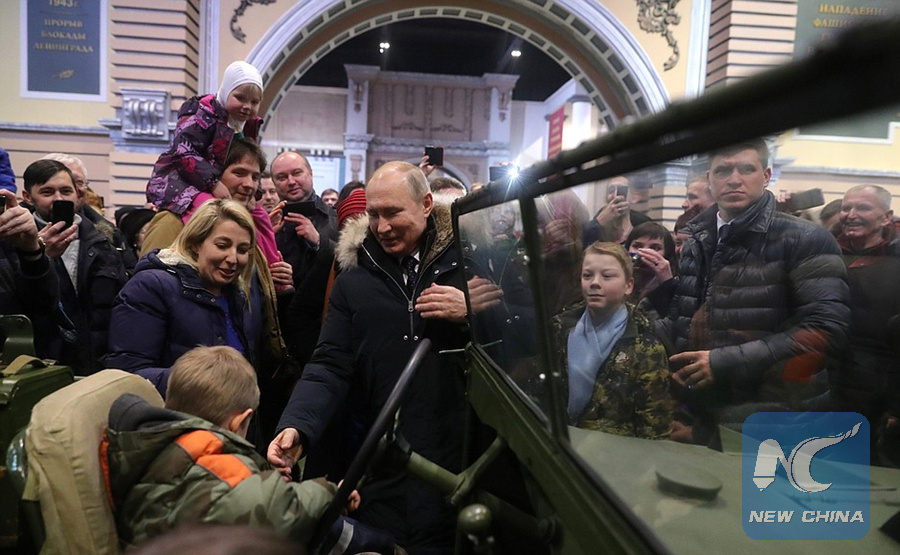 Russian President Vladimir Putin pays a visit to an exhibition dedicated to the 75th anniversary of the complete liberation of Leningrad from the fascist blockade during the World War II in St. Petersburg, Russia on January 27, 2019. (KREMLIN PHOTO)