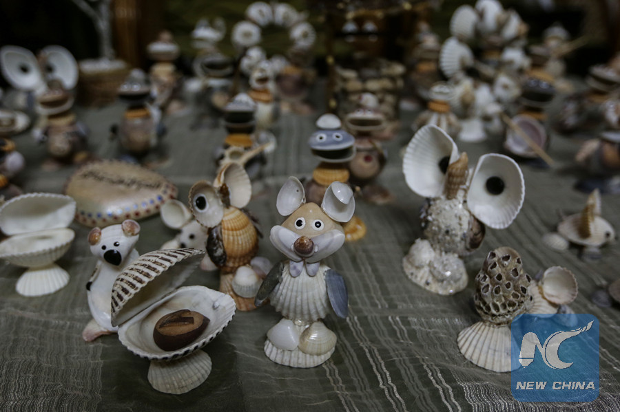 Art pieces made by Palestinian young man Ahmed al-Madhoun, 31, by using seashells he collects from Gaza beaches, are seen at his house in Gaza City, on Feb. 10, 2019. (Xinhua/Stringer)