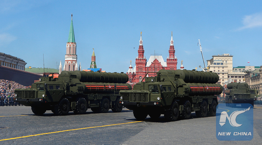 Russian S-400 missile air defence systems on display during a parade at Red Square in Moscow, May 9, 2018. (REUTERS)