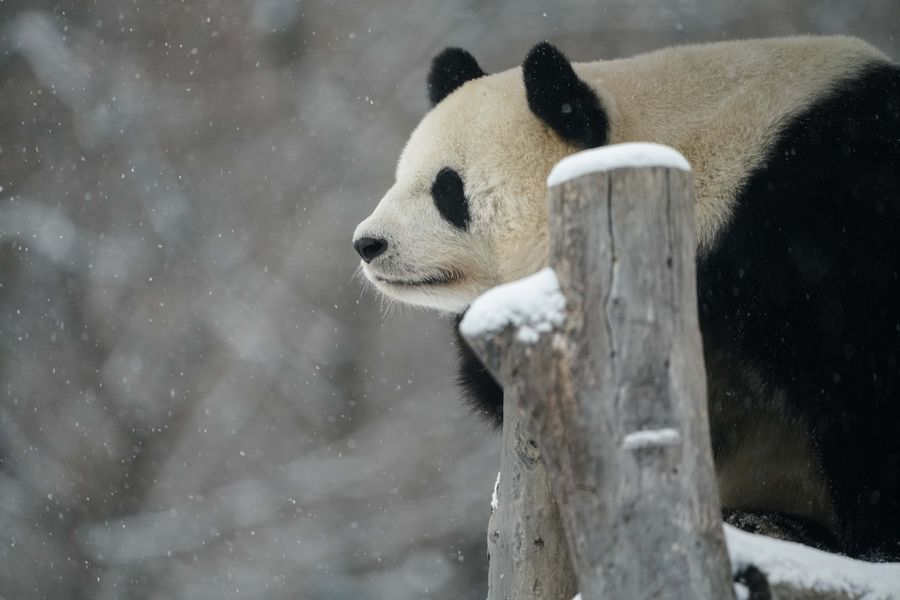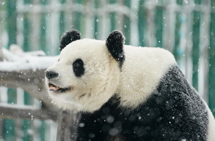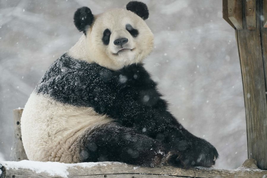 Amazed by the snowfall, Giant panda Sijia found herself a naughty baby cub again at the age of 13 years old.