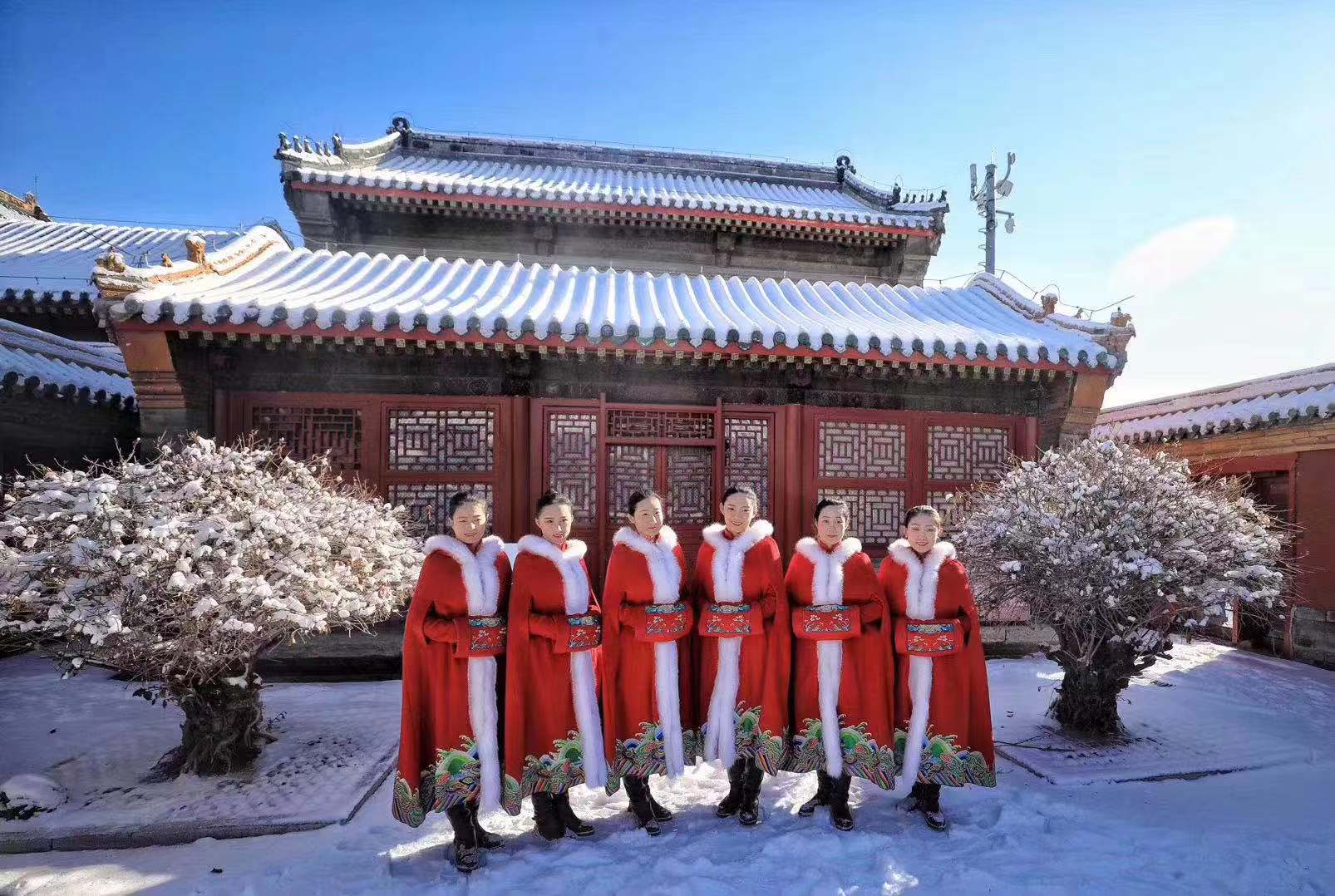 Museum staff pose for a group photo in the snow, Nov. 15, 2019. (Photo provided to Xinhua)
