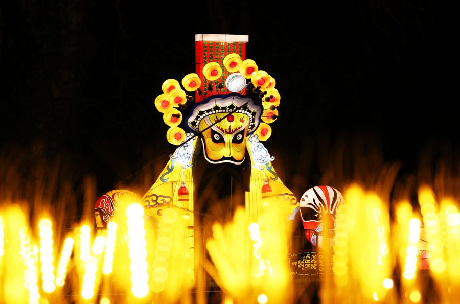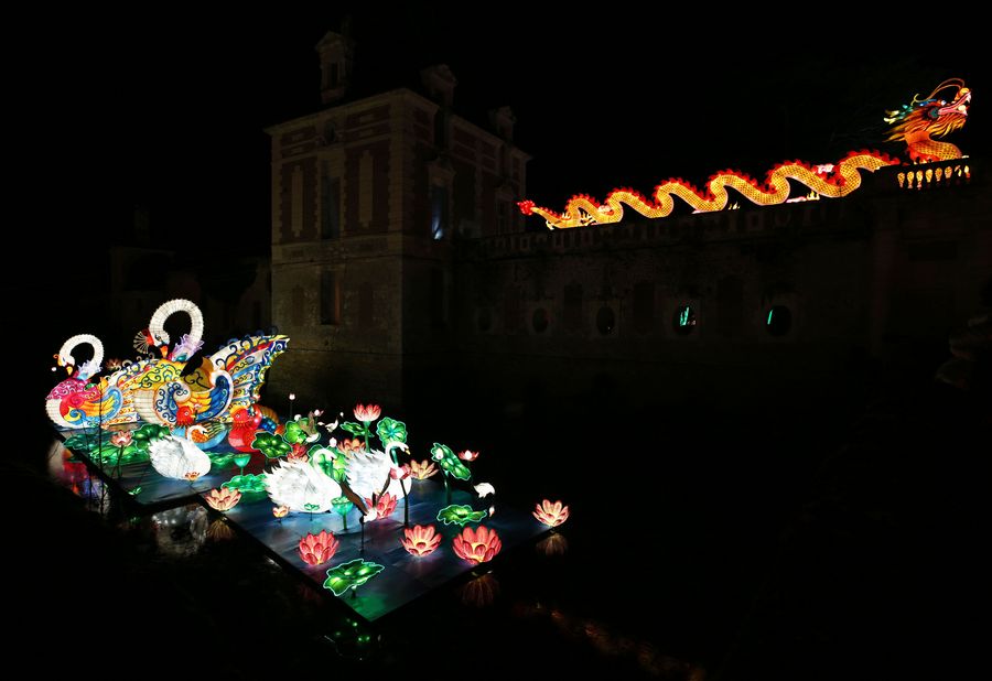 A light installation from Zigong, a city in southwest China's Sichuan Province, is seen during the Chinese Lantern Festival at the Castle of Selles sur Cher, 228 kilometers south of Paris, France, Dec. 15, 2019. (Xinhua/Gao Jing)