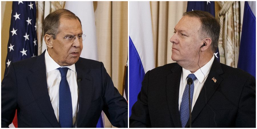 Xinhua file photos of Russian Foreign Minister Sergei Lavrov and U.S. Secretary of State Mike Pompeo