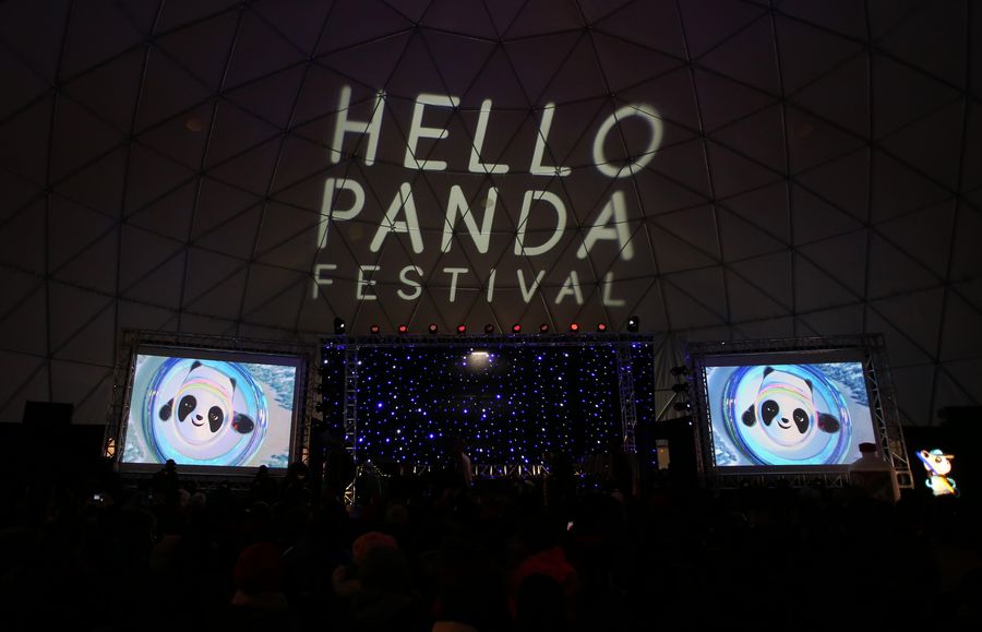 NEW YORK, Jan. 18 (Xinhua) -- A thousand people from the Chinese community in New York gathered at the "Hello Panda Festival" site neighboring Citi Field in Queens on Saturday evening, forming a flash mob to celebrate the Beijing Winter Olympics.