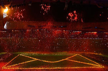 | Performance: A Letter to the Future | | Red leaves of Fragrant Hill are shaked off at the center of the field during the art performance "A Letter to the Future" of the closing ceremony of Beijing Paralympic Games. |