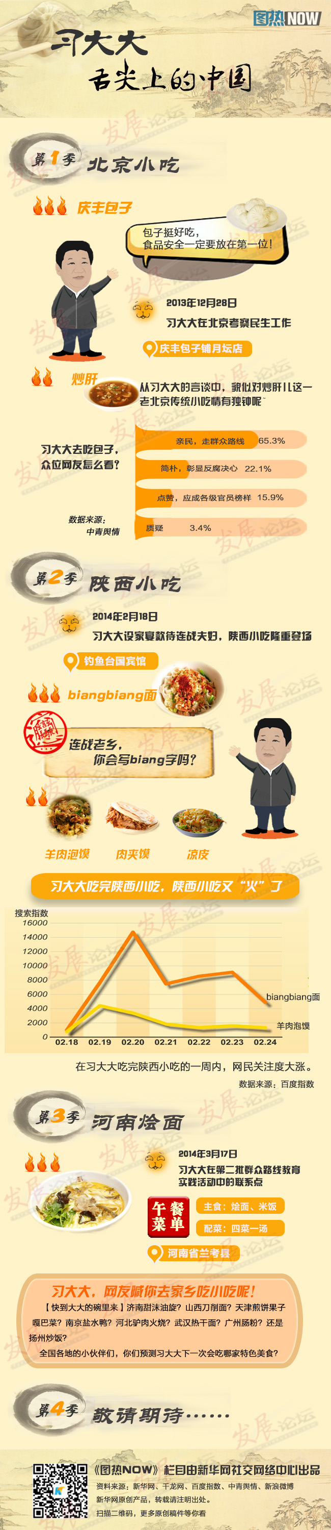 從慶豐包子到河南燴面,習(xí)大大的舌尖,嘗火了一批簡單實(shí)惠又不乏文化底蘊(yùn)的中華美食。究竟還有多少這樣的美食會(huì)一波波火起來?各級(jí)官員,快來學(xué)習(xí)習(xí)大大清新簡約樸實(shí)親民的“食風(fēng)”吧!