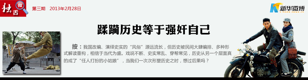 @水天:一90后女生為最新版《笑傲江湖》叫屈:“沒(méi)有于正,誰(shuí)知道《笑傲江湖》?抄你,是你的榮幸,改你,是你的造化。沒(méi)有于正,我們永遠(yuǎn)不屑于理睬金庸?!彪m然金庸寫(xiě)的不是史實(shí),但可見(jiàn)一代代的”洗滌“必將物是人非,一摞教科書(shū)也難”矯枉“一部電視劇。