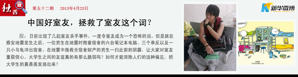 【室友中的戰(zhàn)斗機】 人固有一室友,或投毒殺人,或拯救其余室友電腦六臺單反三臺烏龜一籠于地震之中…… 他一個人拯救了全宿舍的財產,對他的敬佩之情猶如滔滔江水連綿不絕!