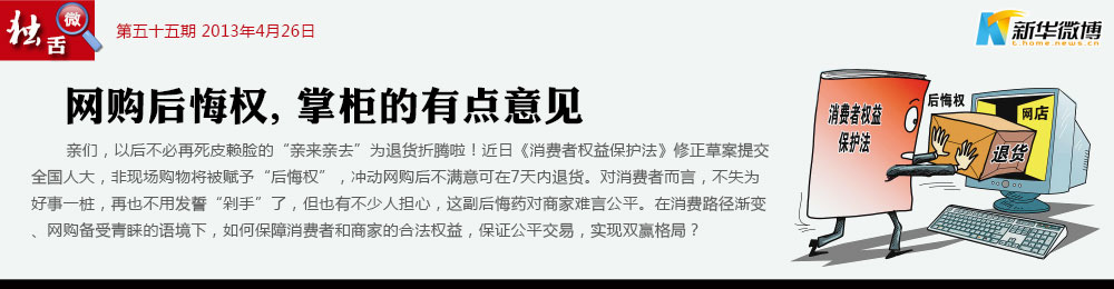 【規(guī)定有待細(xì)化】 如何端平行政手段調(diào)控的一碗水,看的就是在執(zhí)行與監(jiān)管中的功夫。將“后悔權(quán)”引入消法,應(yīng)配套出臺(tái)相關(guān)實(shí)施細(xì)則。對(duì)退貨時(shí)郵寄費(fèi)、送貨費(fèi)等標(biāo)準(zhǔn)加以限定,充分體現(xiàn)消費(fèi)者和經(jīng)營(yíng)者平等的原則,使其更具操作性。