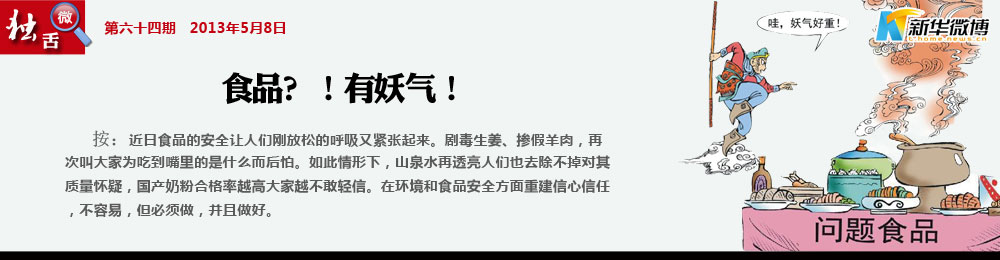 敢問(wèn)天安全在哪里? 食品安全問(wèn)題再發(fā)多發(fā),民以食為天,不禁要“天問(wèn)”:為何監(jiān)管不能如出口食品質(zhì)檢那樣有效防范?同時(shí)也要“地嘆”:農(nóng)民為何產(chǎn)毒姜,自不食,心安理得!屈原“天問(wèn)”是“世人皆醉我獨(dú)醒”的慨嘆之問(wèn),今“民以食為天”之問(wèn),能否不僅是慨嘆之問(wèn)?