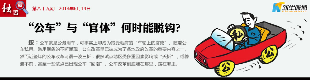 公車私用:特權(quán)象征? 一大學(xué)男生模擬競(jìng)選“某某局長”的大膽演講,引來喝彩。他說“如果我成功當(dāng)選,我不會(huì)公車私用,住豪宅,不會(huì)與不法分子在餐桌上談生意,不會(huì)抱著二奶接三奶的電話……”