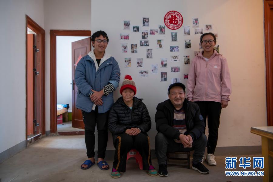 云南省會(huì)澤縣大一學(xué)生王淼(左一)一家在拍全家福(2月6日)。新華社記者 林碧鋒 攝