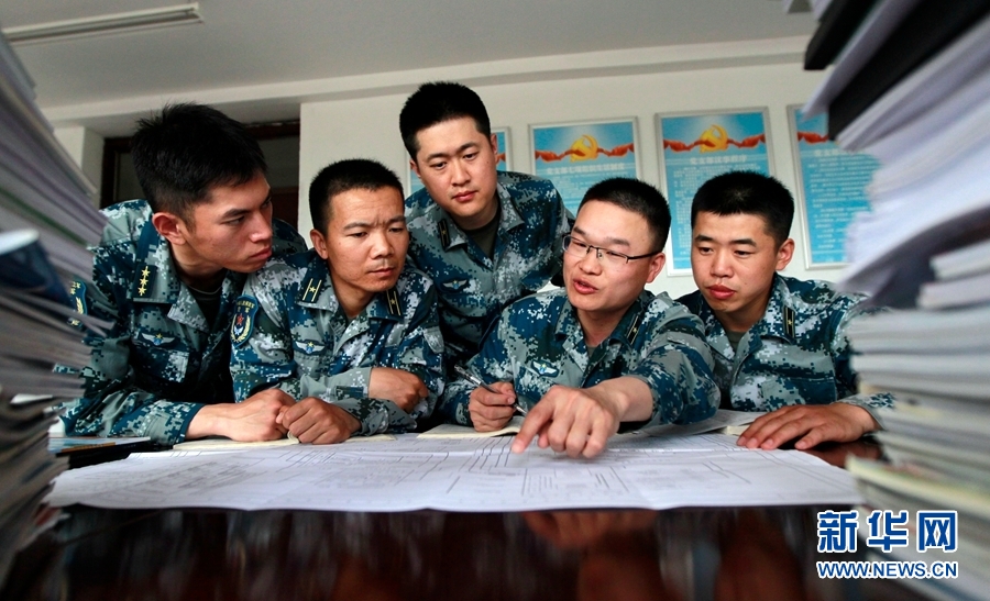 “高學(xué)歷戰(zhàn)勤班”是一個集體,成員之間需要默契配合,才能確保任務(wù)完成。圖為戰(zhàn)勤班成員相互鼓勵。李衛(wèi)民 攝 新華網(wǎng) 發(fā)