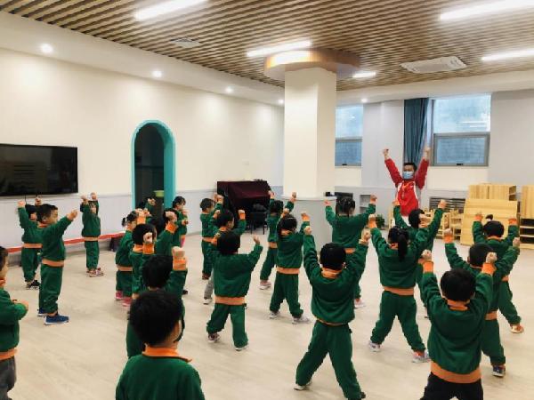 教師組織小朋友開展體育活動。嚴婷婷 攝