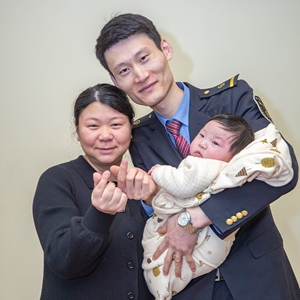 付寶印是中國鐵路成都局集團(tuán)有限公司重慶客運(yùn)段的一名列車長(zhǎng)。今年是付寶印工作以后的第7個(gè)春運(yùn),也是他無法和遠(yuǎn)在北方的家人一起度過的第7個(gè)春節(jié)。剛剛喜添小寶寶的他本計(jì)劃今年過年帶著老婆孩子回吉林老家看望父母,為了響應(yīng)就地過年的號(hào)召,他決定留在重慶本地過年,堅(jiān)守春運(yùn)崗位。工作之余,付寶印也通過視頻通話,和老家的親人“相聚”。