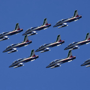 當(dāng)日,意大利“三色箭”飛行表演隊在意大利首都羅馬舉行飛行表演,慶祝意大利空軍建立98周年。