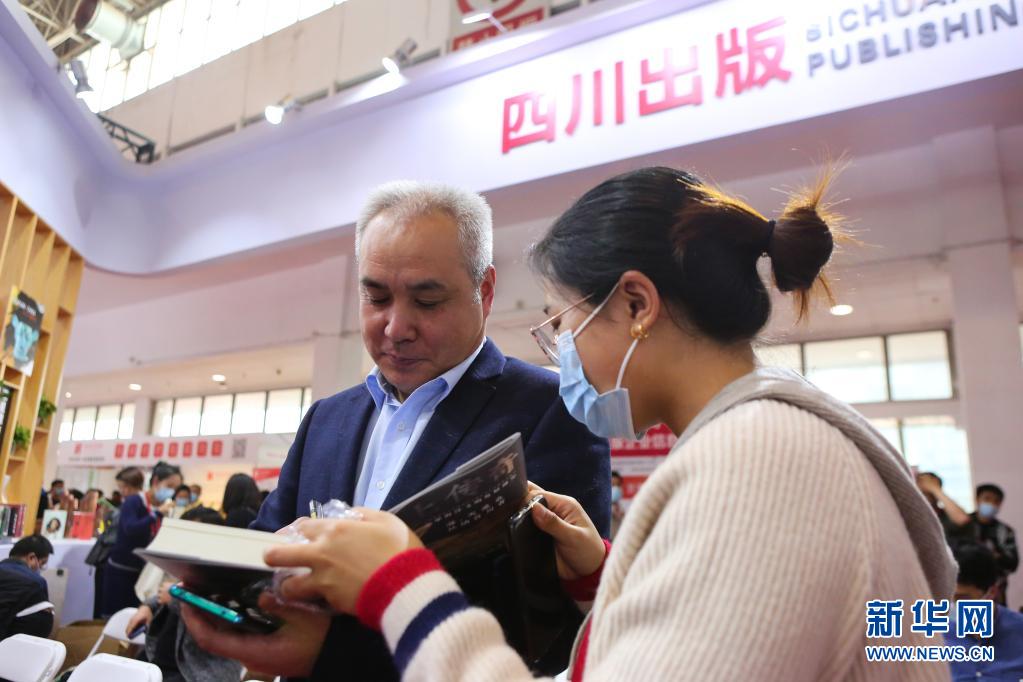 3月31日,在四川出版展區(qū),新書《海上傳奇》作者馬駿杰為讀者簽名。