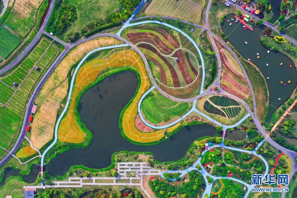這是5月2日拍攝的浙江省杭州市余杭區(qū)徑山鎮(zhèn)的千畝繽紛花海(無(wú)人機(jī)照片)。