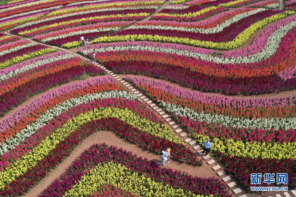 5月2日,游人在湖北省荊門市圣境花谷游玩(無人機(jī)照片)。新華社發(fā)(彭琦 攝)