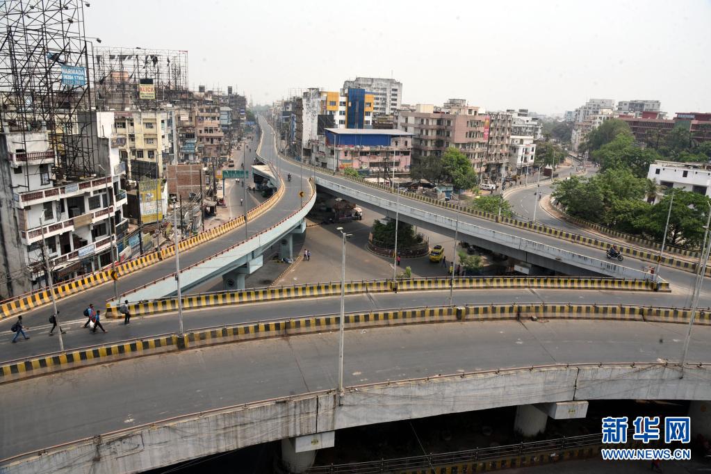 這是5月5日在印度巴特那拍攝的實(shí)施部分封鎖措施下的道路。