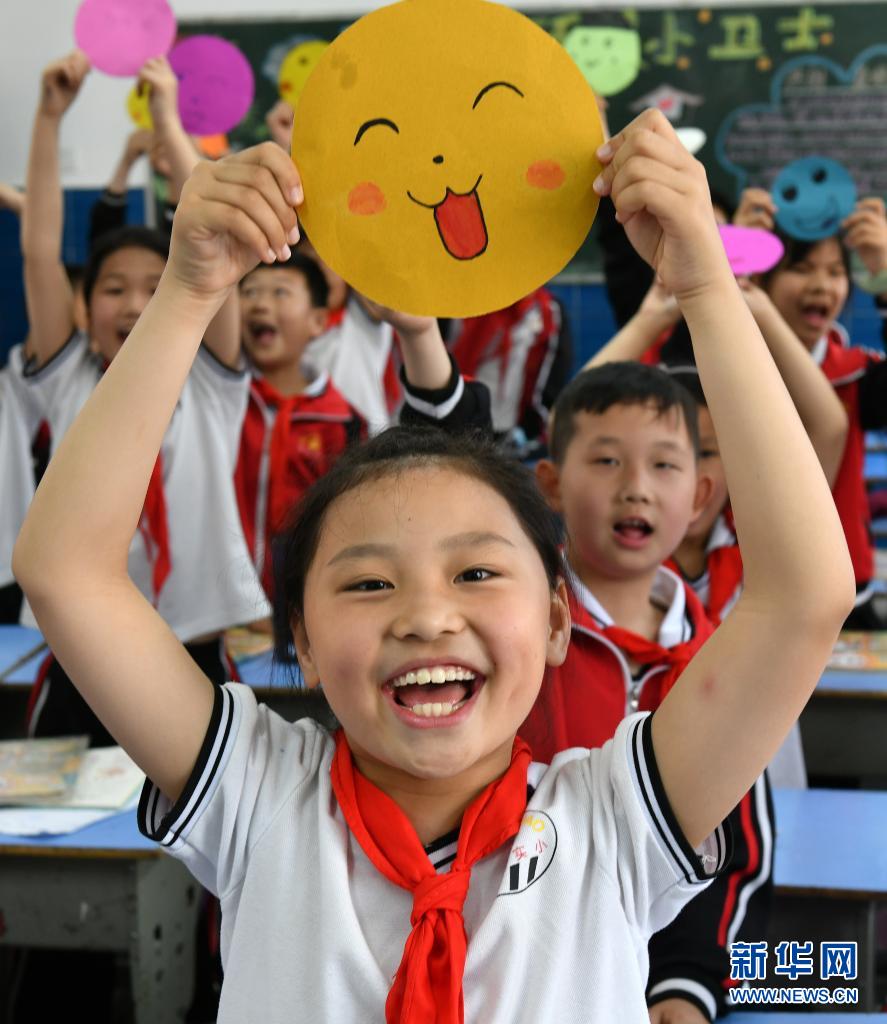 5月7日,湖北省宜昌市秭歸縣實(shí)驗(yàn)小學(xué)的學(xué)生展示自己制作的笑臉。世界精神衛(wèi)生組織將每年的5月8日定為“世界微笑日”,希望通過微笑促進(jìn)人類身心健康,增進(jìn)社會(huì)和諧。新華社發(fā)(王輝富 攝)
