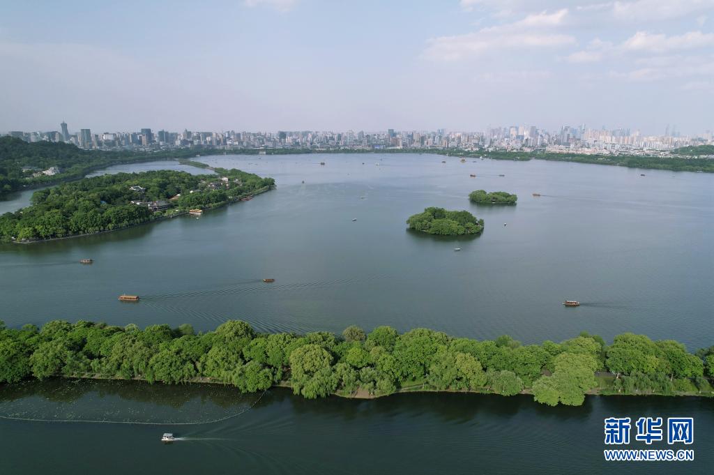這是5月7日拍攝的杭州西湖景色(無人機(jī)照片)。