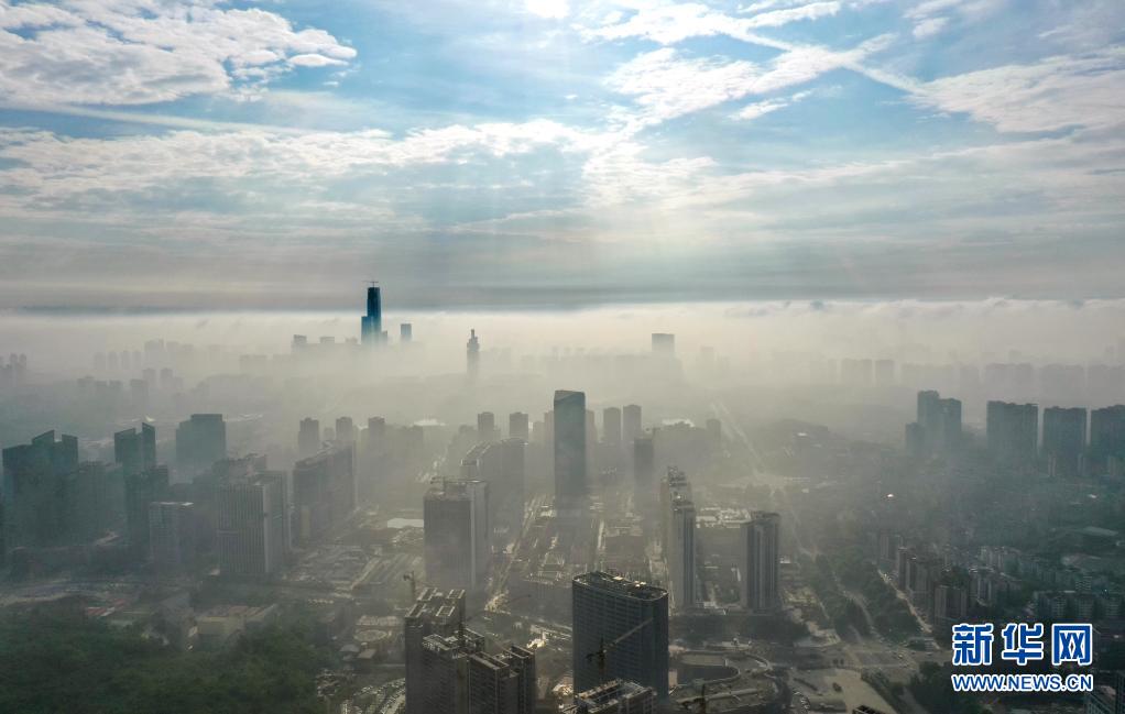 5月8日,貴陽市觀山湖區(qū)的高樓被霧氣籠罩(無人機照片)。