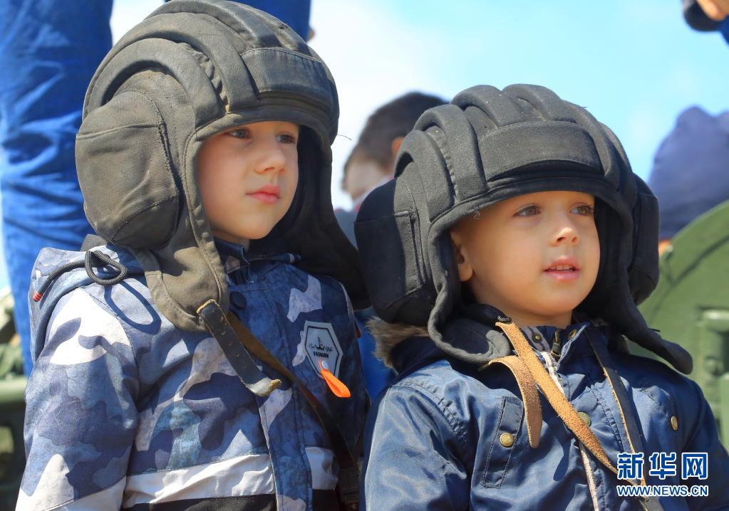 5月9日,在白俄羅斯首都明斯克,參加勝利日節(jié)慶活動的兒童頭戴二戰(zhàn)時期軍用頭盔。