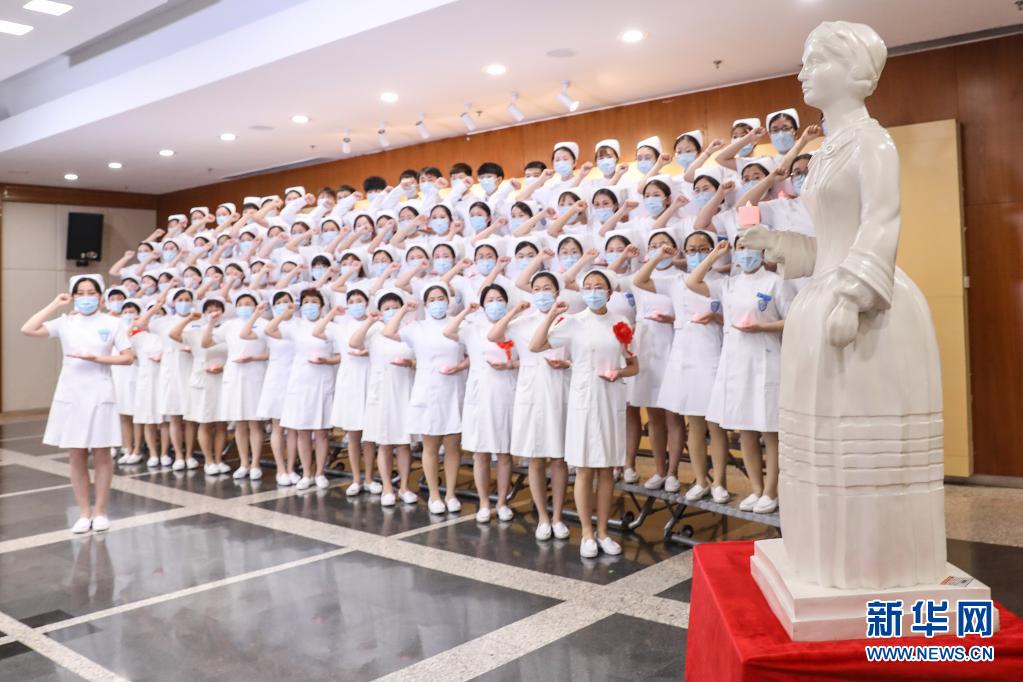 5月10日,北京大學人民醫(yī)院的新入職護士一同重溫南丁格爾誓言。