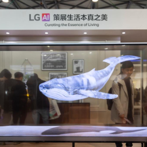 3月12日在上海新国际博览中心LG展台拍摄的一款透明OLED电视。