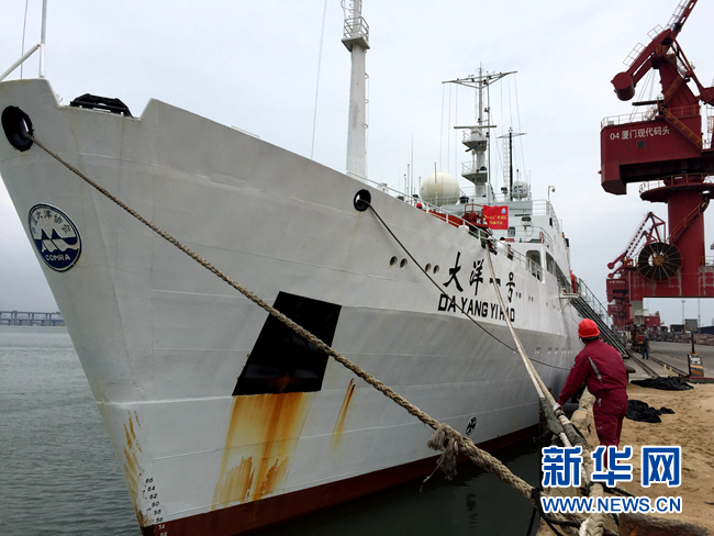 ??? 這是4月15日拍攝的停靠在廈門現(xiàn)代碼頭的“大洋一號”科考船。當日,搭載“潛龍三號”無人無纜潛水器和70名科考隊員的“大洋一號”科考船從廈門起航,奔赴南海執(zhí)行“大洋一號”綜合海試B航段科考任務。這也是目前我國最先進的自主無人潛水器“潛龍三號”首次出海。新華社記者 劉詩平 攝