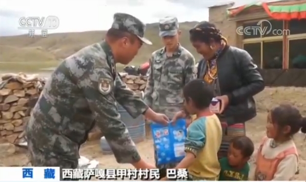 西藏薩嘎縣甲村村民巴桑說,(藏語翻譯成的漢語)我們甲村這邊解放軍又來了,就是給貧困戶幫助,特別是為我們送來了急需的物資,給村里的病人看病,特別感謝解放軍。